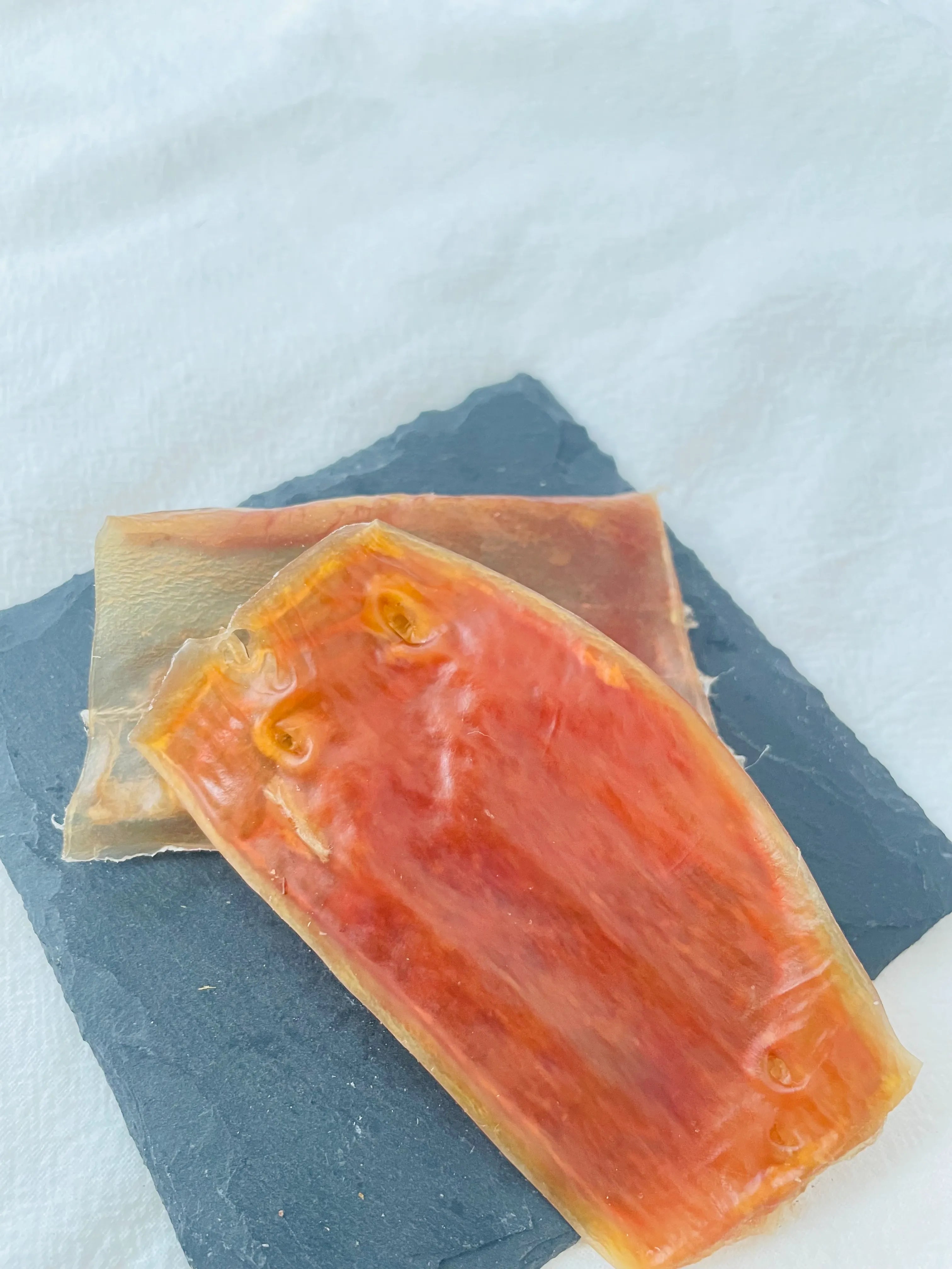 ・疲労回復に皮膚の健康・ 皮膚や被毛の健康・抗酸化作用の活性化嬉しい効果が盛りだくさん!簡単に手やハサミで小さく出来ます。またお湯でふやかせば柔らかくなりますのでシニア犬や固いものが苦手な子はふやかして与えてください。 【内容量】30g 【原材料】猪肉 【成分表】365kcal/100g 粗タンパク質 74.6%以上、粗脂肪 12.1%以上、粗繊維 0.02%以下、粗灰分 3.5%以下、水分 9.6%以下 添加物、保存料は一切使用しておりません。開封後は冷暗所にて保存してください。 適切な給与量は犬種・体重・年齢・性質運動量などにより異なりますが、目安として1日の必要カロリー量を超えないよう誤飲に注意して飼い主様の目の届く範囲であげてください。 天然の原料を使用し添加物を使用していないため色・形・硬さ・匂いに若干の違いがあります。 賞味期限内でも保管方法によってはカビが発生する場合もございます。 少し変色したり硬くなることもありますが、品質には問題ありませんので安心して与えられます。 ご愛犬の体調が変わった時は獣医師に相談して下さい。