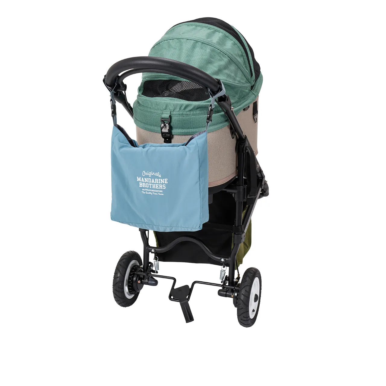 ペットカートに取り付け可能な大容量のリバーシブルお散歩バッグ!大きいサイズでたっぷりの収納力!ペットカートに取り付け可能なバッグが登場。リバーシブル仕様でシンプルタイプとスポーティータイプ両方で使用可能。肩あて付きショルダーストラップが付属。・斜めがけのバッグとして・持ちやすいロープハンドル・両サイドにボトルホルダーが2つ・ペットカートに取付け可能なアタッチメントが2本付属・リバーシブルのどちらでもペットカートに取付け可能・肩あて付きショルダーストラップサイズ本体 W420 D100 H300 mm ペットカート用ベルト対応直径 最大50mm(調節可能)ショルダーストラップ長さ 60〜110cm(調節可能)耐荷重:5kgまで※荷重のバランスが悪いとカートが転倒する場合がございますのでご注意ください。素材表側/Polyester 100%裏側/Nylon 100%