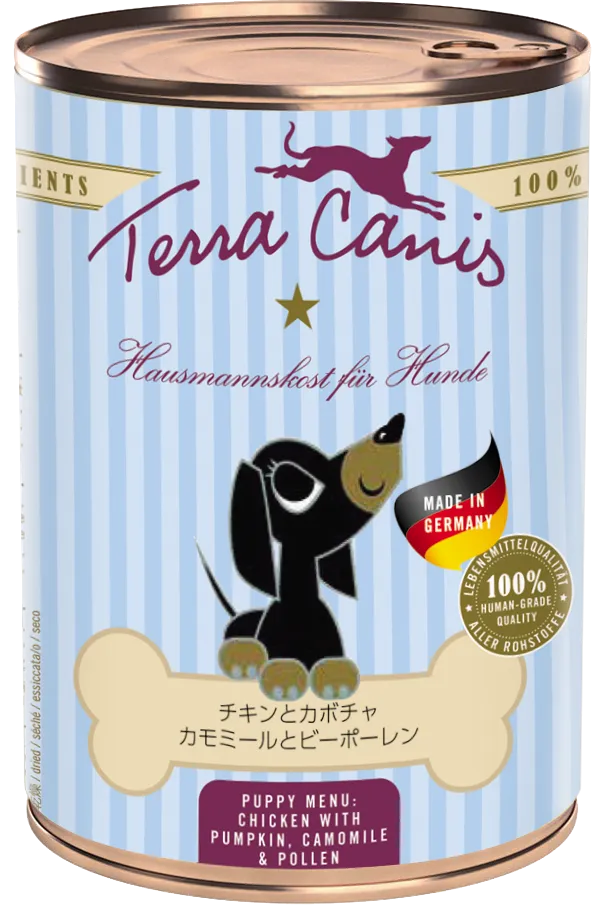 高品質で栄養価の高いチキン・新鮮な野菜・果物・ハーブ・ビーポーレンを配合したコンプリートパピーフードです。特に重要なパピー期の食事選びは「最初から最高の食事を。」妊娠中や授乳中の愛犬にもおすすめします。 容量400g 生産地 ドイツ サイズ ウェット 素材 鶏肉の心臓(33%)、鶏肉の胃(14%)、カボチャ(14%)、キビ、リンゴ、トマト、鶏肉の筋肉(6%)、鶏肉のレバー(4%)、亜麻仁油、カボチャの種子粉(1%)、オイスターシェル、ビール酵母、チャイブ、カモミール(0.2%)、珪藻土、ローズヒップ、ミネラルクレイ、ポーレン、海藻、ビタミンA、ビタミンD3、銅、ヨウ素、亜鉛、マンガン、鉄 成分表 租タンパク質/8.70%租脂肪/4.40%租繊維/0.30%租灰分/2.00%水分/78.30%カロリー100g/Kcal/90.8