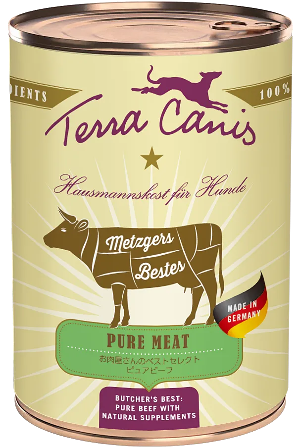 バイエルンのお肉屋さんが厳選した新鮮なビーフのお肉97%に天然亜麻仁油・海藻等を加えています。生肉の代わり、手づくりご飯、トッピングに。保存性にも優れた使いやすいお肉の缶です。 容量400g 生産地 ドイツ サイズ ウェット 素材 牛の心臓(61%)、牛の肺(30%)、牛のレバー(7%)、亜麻仁油、卵殻の粉、海藻、ビール酵母、ミネラルクレイ 成分表 租タンパク質/12.00%租脂肪/8.00%租繊維/0.40%租灰分/1.70%水分/77.50%カロリー100g/Kcal/109.9