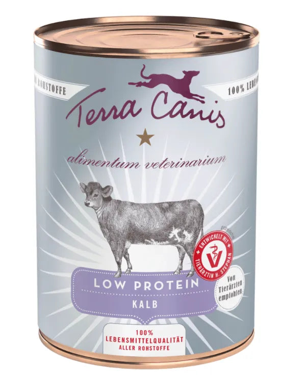 ★全て100%ヒューマングレードクオリティ原料で作られたNRC 値(米国学術研究会議の必要栄養値)に基づく栄養バランスを用いて製造しています★この商品はグレインフリーです。穀物・疑似穀物を使用しておりません。★成犬用 腎臓・肝機能の健康維持に・低タンパク設計(粗タンパク5.6%)・リン・ナトリウムの調整(リン0.078%、ナトリウム0.05%)★野菜・果物・ハーブの役割・非タンパク質ベースのエネルギー源:アマニ油、ジャガイモ、スーパーフードココナッツ粉を使用・銅を含む果物と野菜を使用しない・樺の木、イラクサ、パセリ、キンセンカとタンポポ:腎臓と肝臓の健康維持(主食としてご使用される場合)使用前および6か月を超えてご使用される場合はかかりつけの獣医師にご相談することをお勧めします。そして自由に飲める水を与えてください。この商品はEU規制2020/354の推奨事項の全てに従っています。 容量400g 生産地 ドイツ サイズ ウェット 素材 仔牛の心臓(25%)、仔牛の肺(12%)、仔牛の脂肪(7%)、じゃがいも、人参(8%)、ズッキーニ、カボチャ(8%)、メロン、リンゴ、亜麻仁油、ココナッツ粉、ダンデライオン*、バーチリーフ*、パセリ*、チアシード、カレンデュラ*、イラクサ*、オイスターシェル、海藻*、ビタミン(A、D3、E、B1、B2、B12)、ビオチン、パントテン酸、葉酸、銅、マンガン、ヨウ素、亜鉛、セレン、カルシウム、リン、マグネシウム、ナトリウム、L-カルニチン 成分表 租タンパク質/5.60%租脂肪/8.90%租繊維/0.70%租灰分/1.00%水分/78.80%カロリー100g/Kcal/119.5